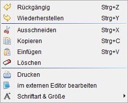 Über das Kontextmenü stehen ebenfalls mehrere Funktionen für die Bearbeitung des Bemerkungstextes zur Verfügung: