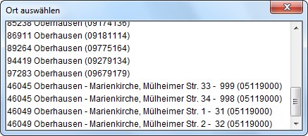 Falls die Postleitzahl, der Ort und die Straße korrekt eingetragen bzw. ausgewählt wurden, so wird der entsprechende Ortsteil in dem sich die