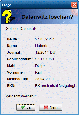 Dadurch wird für jeden selektierten Eintrag der folgende Hinweis eingeblendet, der alle Informationen zum Etikett nocheinmal übersichtlich präsentiert und ein versehentliches Entfernen des Datensatzes vermeiden soll.