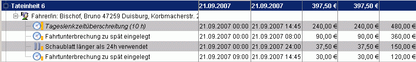 Unterhalb der einzelnen Tateinheiten werden die Verstöße aufgeführt.