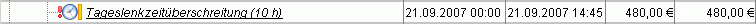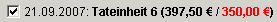 Innerhalb der Datenanzeige wird eine aus der Berechnung genommene Tateinheit dann folgendermaßen dargestellt: