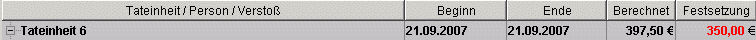 jeweiligen Zeile (Regelsatz, Berechnet, Festsetzung, Verwarngeld) angezeigt.