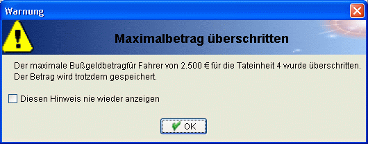 Bußgelder überschritten wird. In diesen Fällen weist das Programm durch einen entsprechenden Hinweis darauf hin.